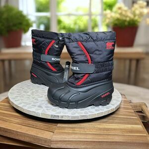 Sorel Kids Flurry Insulated Winter Snow Boots Black Red Size 10 US (27 EU) Water
