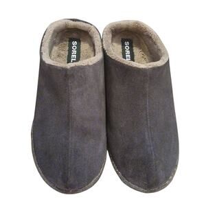 Sorel Kids Lanner 40135 Gray Brown Faux Fur Round Toe Slip On Slippers US Sz 4