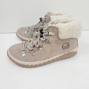Sorel Kids Out and About Conquest Boots Size 1 Grayish Tan Suede