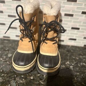 Sorel Kids Tan and Black Winter Boots Wool Caribou Size 1Y