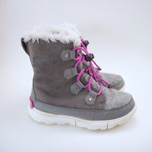 Sorel Kids Youth Girl's Size 3 Explorer Waterproof Winter Boots Faux Fur Trim