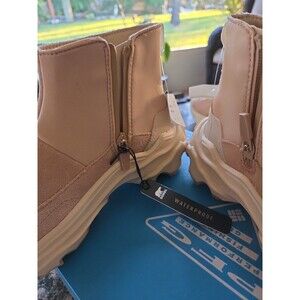 The Sorel Kinetic Breakthru Acadia Size 6 Waterproof Sneaker Boot in Tawny Buff is a stylish and practical choice for women looking for a versatile winter boot. With a round toe shape, zip closure, and low heel height, these ankle boots are perfect for casual occasions and outdoor activities during the winter, fall, and spring seasons. The waterproof feature ensures your feet stay dry in snowy or rainy conditions, while the nylon upper and rubber outsole provide durability and comfort. The foam insole and fabric lining add extra cushioning and coziness, making these boots a must-have in your winter footwear collection.
