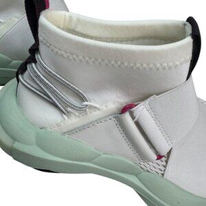 Step into sporty chic comfort with these Sorel Kinetic Impact Strap Sneakers in white with mint green soles, size 6. Brand new with tags (NWT), retailing for $145. These ultra-modern sneakers feature a mesh upper for breathability, elastic cross straps for a secure fit, and a chunky geometric sole that delivers both comfort and high-impact style. Designed for all-day wear, they’re perfect for travel, athleisure, or casual streetwear looks.
