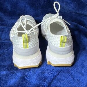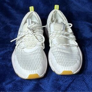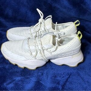 Chic and comfortable Sorel sneakers. White mesh with yellow accents. Perfect for casual wear.
