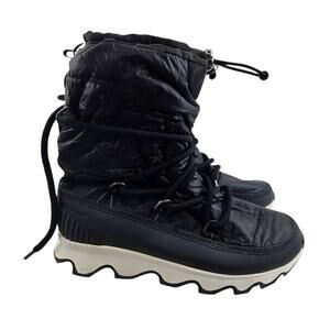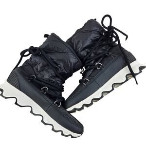 Sorel Kinetic Snow Boots Womens 9 Black White Lace Up Comfort Winter Gorpcore