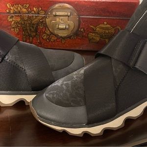 Black Sorel Kinetic sneakers. Black and white, excellent preowned condition. Size 9