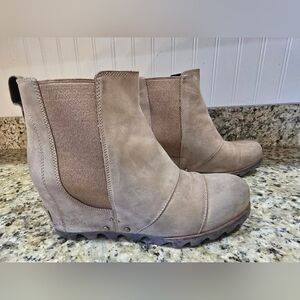 Sorel LEA HIDDEN WEDGE Chelsea Boots 8.5 Women Waterproof Leather ELK CURRY Tan
