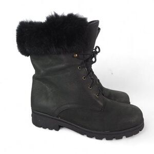 Sorel Lace-up Leather w/ Fur Trim Winter Boots Made in Canada Black Women's 8.5M