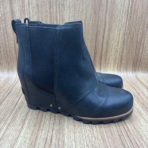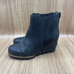 Sorel Lea Black Leather WP Wedge Chelsea Ankle Boots Booties Women’s Size 7 M
