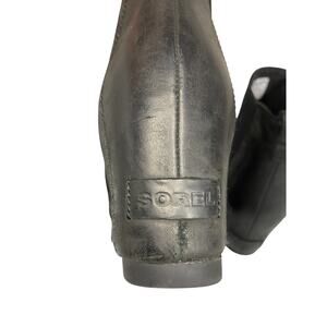 Sorel Lea Joan of Arctic Wedge Ankle Boot Black Leather Pull On Womens Size 11
