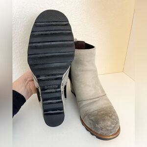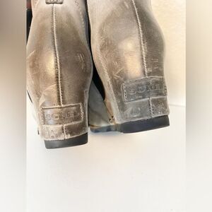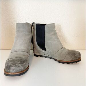 Sorel Lea Wedge Boots Joan of Arctic Chelsea Taupe Grey Tan and Black 8.5