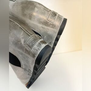 My favorite boots! Cute wedge heeled booties. Comfort and style! Has a purposeful distressing style. Great condition with lots of wear left.