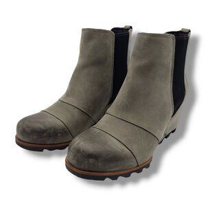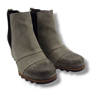 Sorel Lea Wedge Chelsea Boots Womens 11 Waterproof Leather NL2704-089 Grey