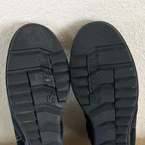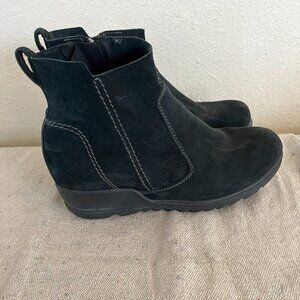 Sorel Woman's Leather Evie Black Leather Waterproof Outdoor Side-zip Wedge Boots Sz 8.5