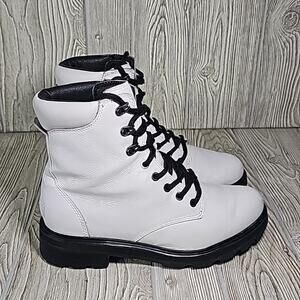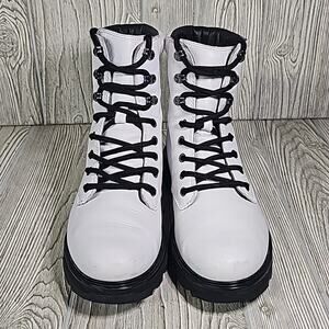 Sorel Lennox Lace Up White Waterproof Leather Combat Boots Womens Size 10