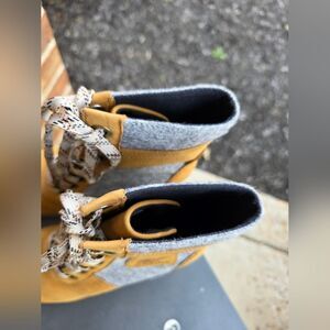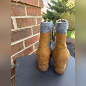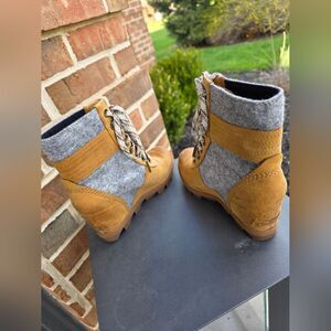 Sorel Lexie Wedge Boots Felt Leather Camel Brown Sz 5