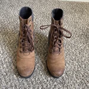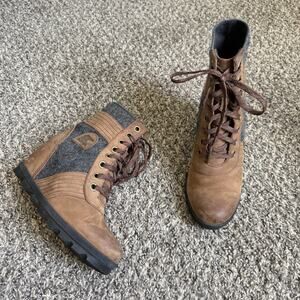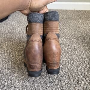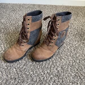 Sorel Lexie Womens Wedge Boots Size 9 Brown Leather Gray Comfort Casual fall Winter