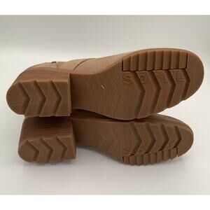 The product is a pair of Sorel Light Suede Boots in size 9, featuring a short heeled design with a buckle and zipper accent. These ankle boots have a round toe shape and are made of brown suede material, making them ideal for casual winter occasions. The boots are in the regular calf width and are designed for women who prefer a stylish and comfortable footwear option. With the Sorel brand known for quality and durability, these boots are a practical and fashionable choice for any winter wardrobe.
