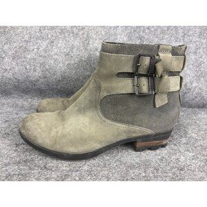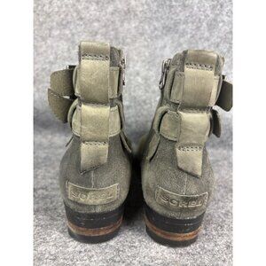Sorel Lolla Ankle Ankle Boot Women 8.5 Gray Leather Zip Buckle NL3080-052