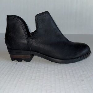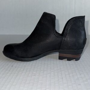 Sorel Lolla black leather cut out ankle booties. Size 5. Excellent like new condition
