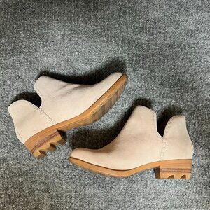 Chunky heel, ankle booties crafted from rich suede feature side cutouts. Classic casual boot with an edgy side.
