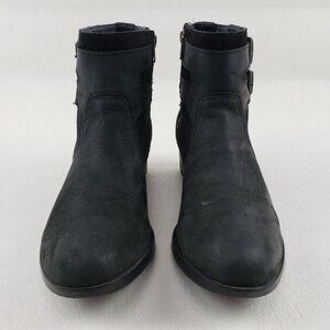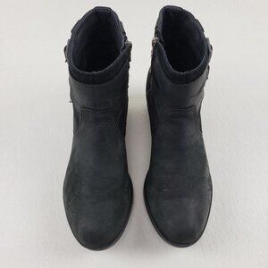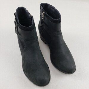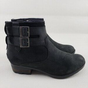 Sorel Lolla Waterproof Ankle Boot Womens 9 Black Leather Side Zip Buckle Moto