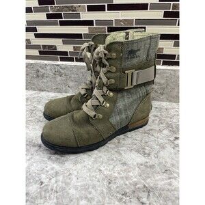 Sorel Major Carly Olive Green Suede Combat Boots Women Size 6.5 Zipper NL 2158