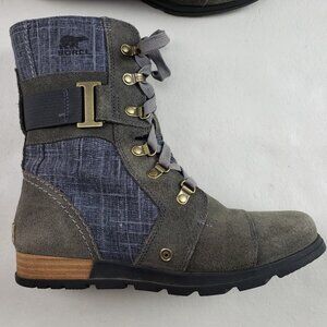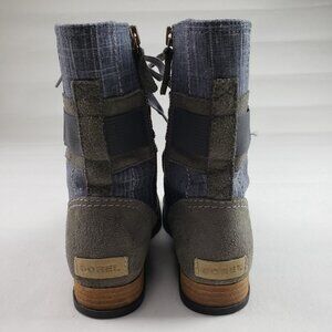 Sorel Major Carly Suede Boot Womens 8 Gray Blue Denim Ankle Side Zip Moto Combat