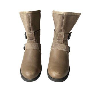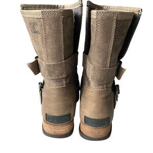 Sorel Major Moto Boot Sz 6.5 Leather Suede Foldover Buckles Pebble Dark Fog