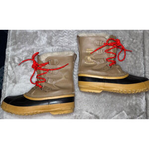 Sorel Manitou Kaufman Vintage Wool Lined Rubber Duck Boots Womens Size 7 Good condition - see pictures for wear. Minor cracking of leather finish. Scuffing on tongue of the left boot as shown.