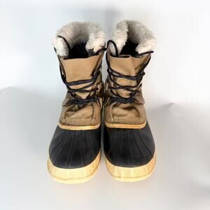 Sorel Manitou Waterproof Fleece Nubuck Leather Rubber Winter Boots Tan Black Brown Men 10