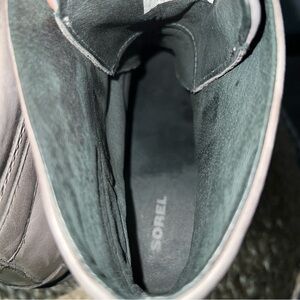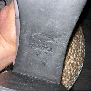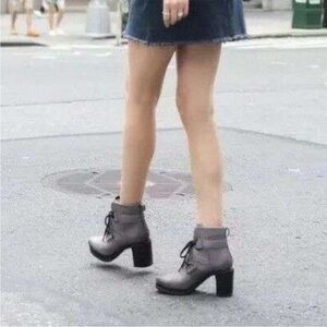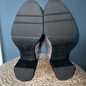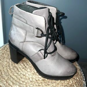 Sorel Waterproof and Stylish Margo Boots with Oversized Hardware Holding the Laces over the Vamp. 3.25” Sturdy Block Heels with a 3/4” Platform. Leather Lined and Padded Insole. Color is Quarry.
