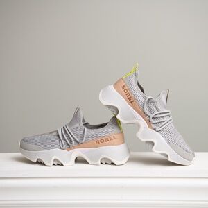 These Sorel Kinetic Impact shoes are a Women's size 7. They are new without tags, unused! Retail is $145! Grab this awesome shoes at a great price! Main coloring is a light grey.