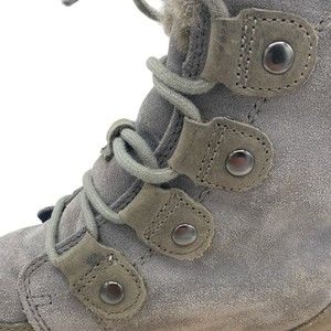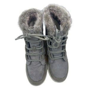Sorel NL3039-052 Gray Suede Faux Fur Lined Boots Size 6 Lace Up Snow Winter