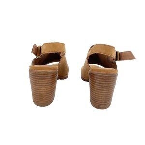Sorel Nadia Camel Suede Block Heel Open Toe Slingback Sandals Heels Womens 9