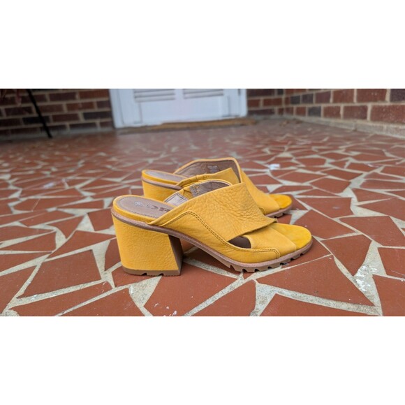 Sorel Nadia Mule Sandals-Yellow Nubuck Leather -Block Heel-Sz 6