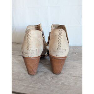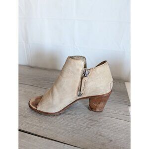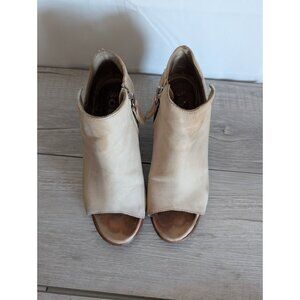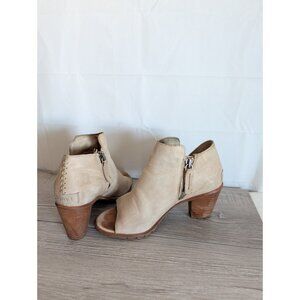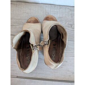 Sorel Nadia Peep Toe Ankle Neutral Leather Beige Booties Shoes Women's Size 6.5