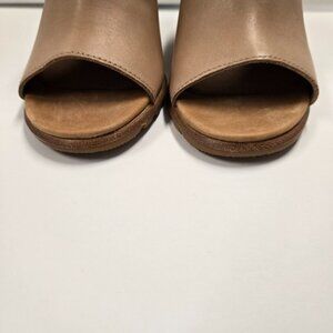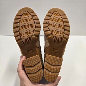Sorel Nadia Tan and Cream Leather Peep Toe Ankle Bootie