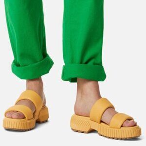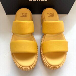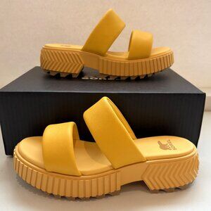 Sorel ONA Streetworks Slide Mid Sandals Leather Yellow Ray Size 7 NEW