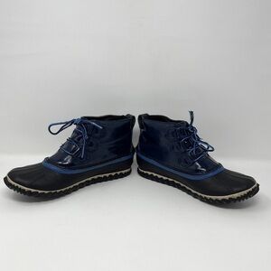* Wear on laces. Tiny separation on lining and back ankle at top. See photos.