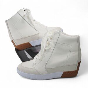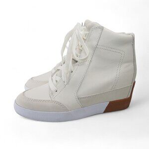 Sorel Out N About Hidden Wedge Leather Boots Women's 7 White / Gum NL4596-125