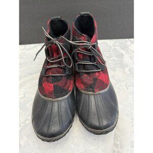 Sorel Out N About Plaid Lace Up Rain Boots Red Black Buffalo Size 10.5