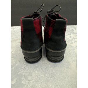 Sorel women’s size 10.5 red black buffalo plaid out n about rain boots.