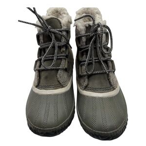 Sorel NL3150-257 Women's Gray Olive Green Faux Fur Snow Ankle Boots Size US 7