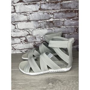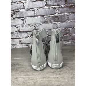 Selling Sorel Out ‘N About Plus Light Grey Textile Spandex Strap Back Zipper Sandals Women’s sz 12M US/43EU