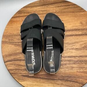 Sorel Out N About Plus Sandals Womens Size 9 Black Leather CAsual Comfort Slides