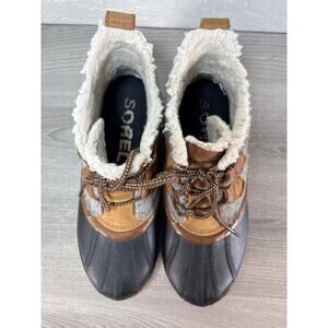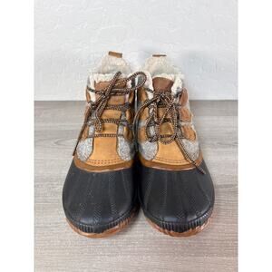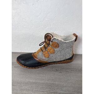 Sorel Out N About Plus Waterproof Duck Boots Gray Felt Tan Leather Womens Size 9