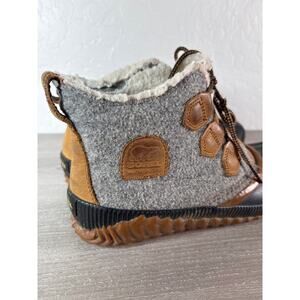 Sorel Out N About Plus Waterproof Duck Boots Gray Felt Tan Leather Womens