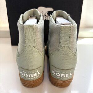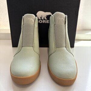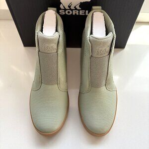 NEW Sorel Out N About Pull On Wedge Booties Leather Ankle Chelsea Boots Safari Green Size 8 NIB