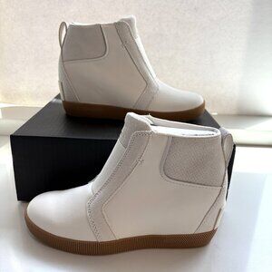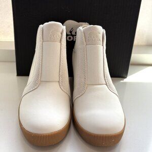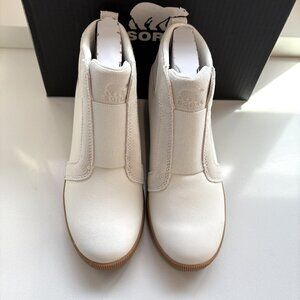 NEW Sorel Out N About Pull On Wedge Booties Leather Ankle Chelsea Boots Sea Salt Size 7 NIB